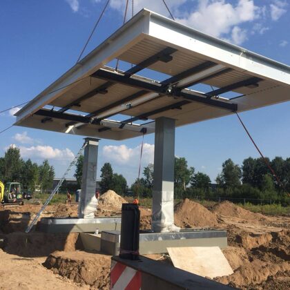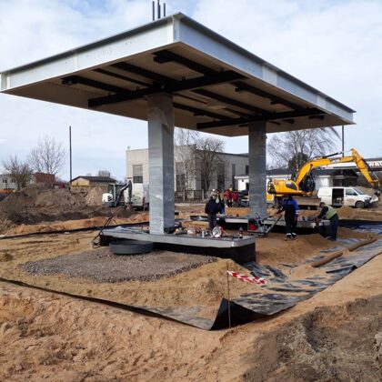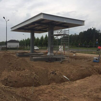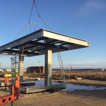Degvielas uzpildes stacijas ēku ražošana un montāža